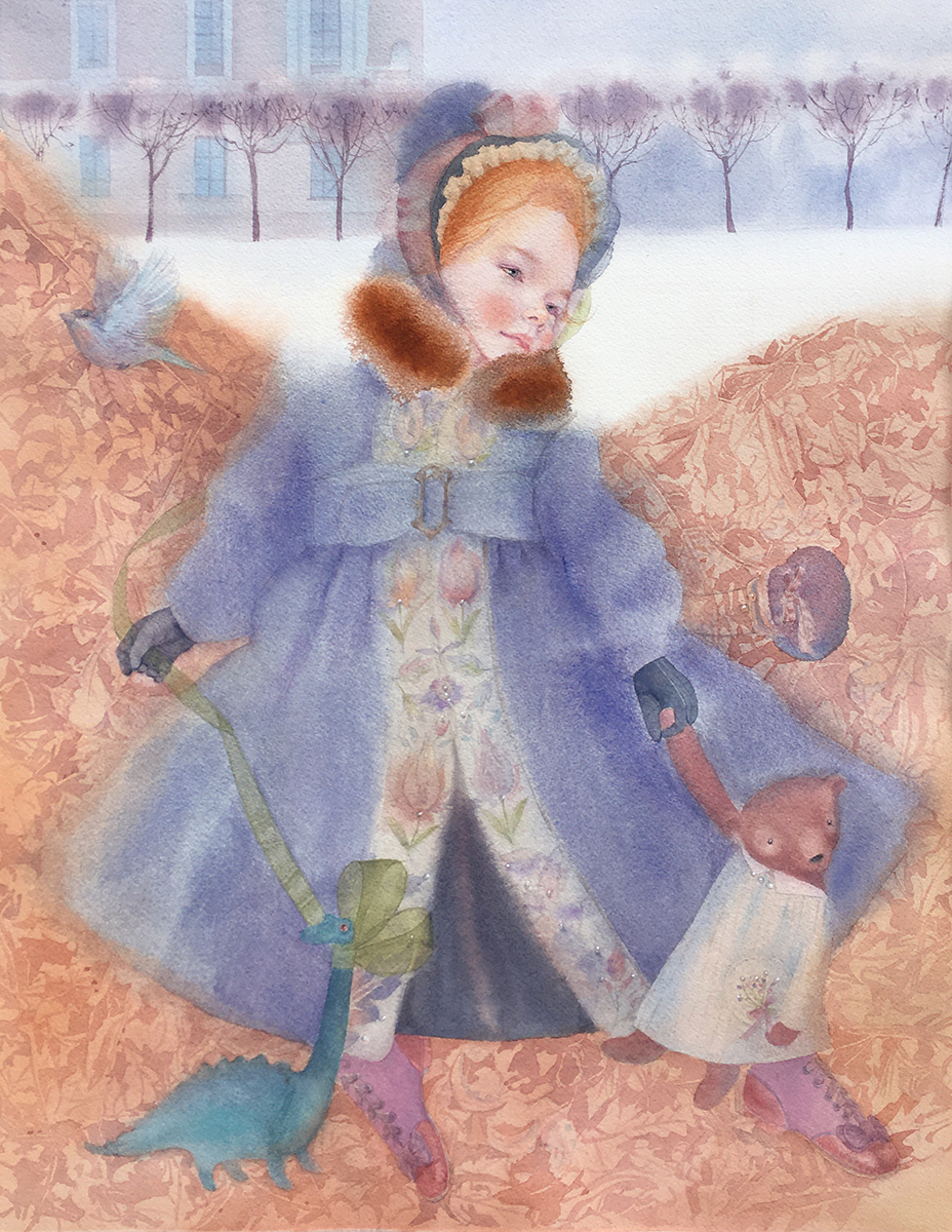 При создании акварели художник Мария Курбатова сочетает несколько манер письма: многослойные лессировки и заливки 'a la prima,' по сухому листу и на влажной бумаге. Излюбленные сюжеты – женские и детские образы с историческим колоритом, персонажи из мира фантазий и грез. Произведения художника создают атмосферу спокойствия, сновидений, волшебства.